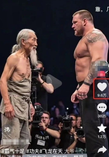 最近刷视频,你有没有刷到过一个“中国功夫老头VS外国肌肉猛男”的擂台赛视频?一个是白发苍苍、穿着对襟练功服的中国师傅,气定神闲,像个世外高人。对面,是一个身高一米九浑身肌肉的外国硬汉,短短几秒钟的视频,点赞都接近10W!